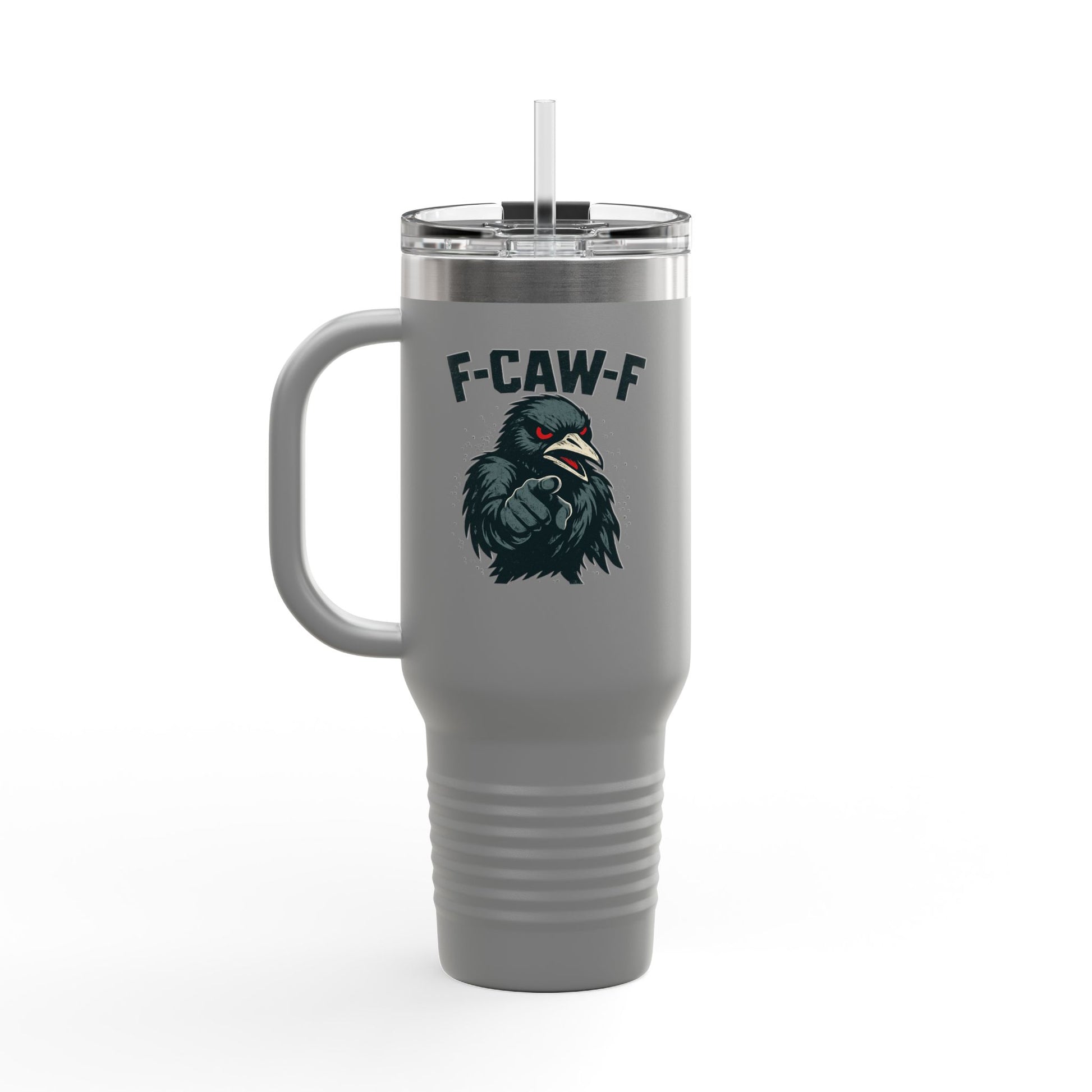 Travel Mug - F-CAW-F Design, Insulated 40oz Cup for Hot and Cold Beverages, Unique Gift for Bird Lovers